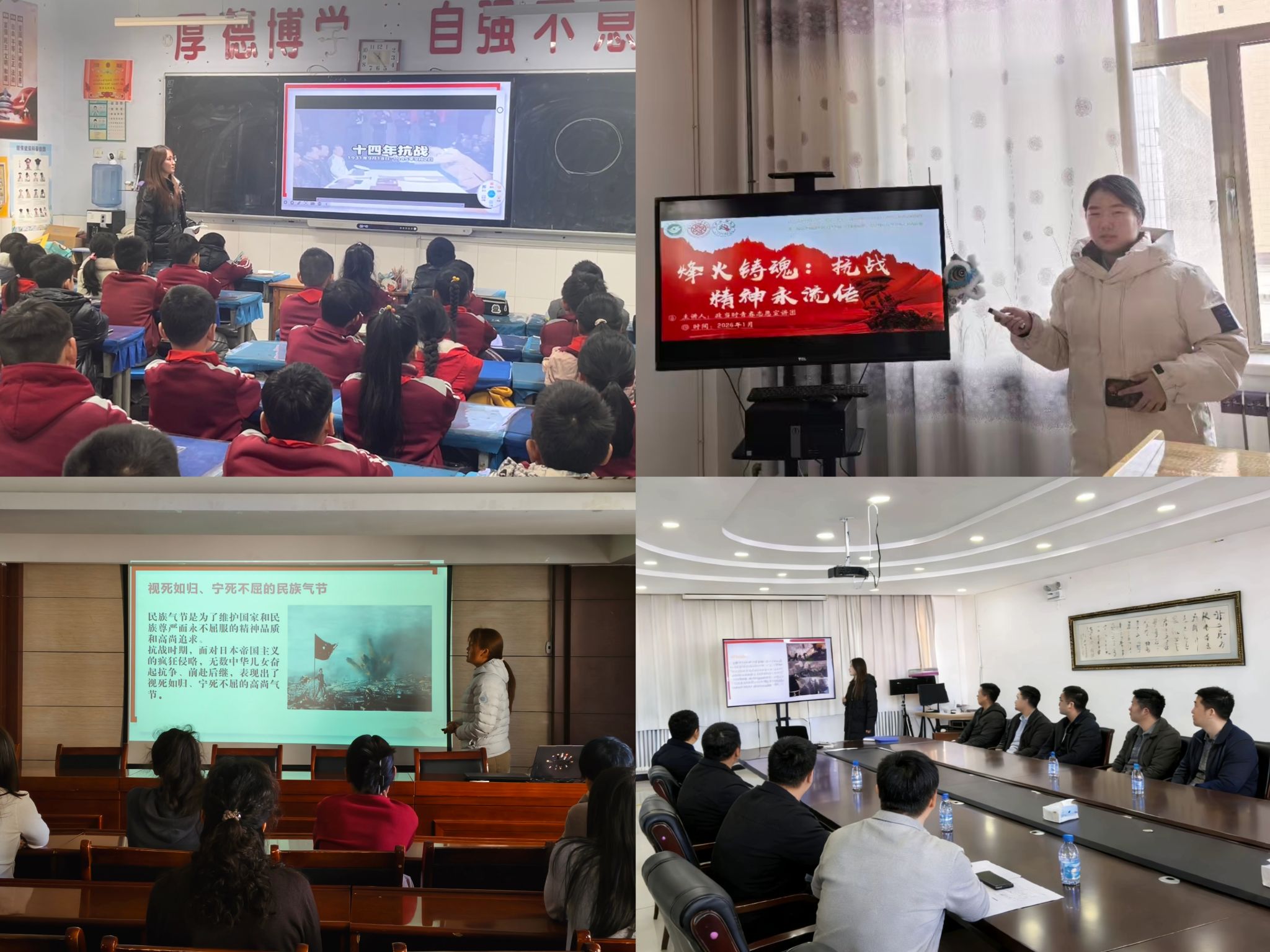 1月25日至2月28日,yl8858永利集团“政当时”青春志愿宣讲团北疆薪火队深入山东、甘肃、陕西、内蒙古、黑龙江5省11地,走进学校、医院、街道社区、企业及红色纪念馆等多个阵地,开展抗战精神宣讲活动。团队面向青少年、医护人员、社区居民、企业职工等群体,开展了10余场分众化宣讲。创新地采用了“线上演播+线下宣讲”的模式,累计吸引2000余人次参与,充分践行青春使命。