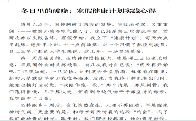 此次寒假健康主题活动,让同学们在科学规划中提升了自我管理能力,在亲情陪伴中懂得了感恩与付出,在坚持践行中锤炼了意志品质。这份以健康为内核、以温暖为底色的寒假收获,将助力每一位政管学子心怀暖阳、步履坚定,以健康的身心状态奔赴新征程。未来,学院也将持续深耕学生身心健康培育工作,把健康生活理念融入日常育人全过程,引导学子将假期养成的良好习惯转化为成长路上的持久动力,以自律之姿、强健之躯、感恩之心,在专业学习与人生道路上稳步前行,绽放青春光彩。