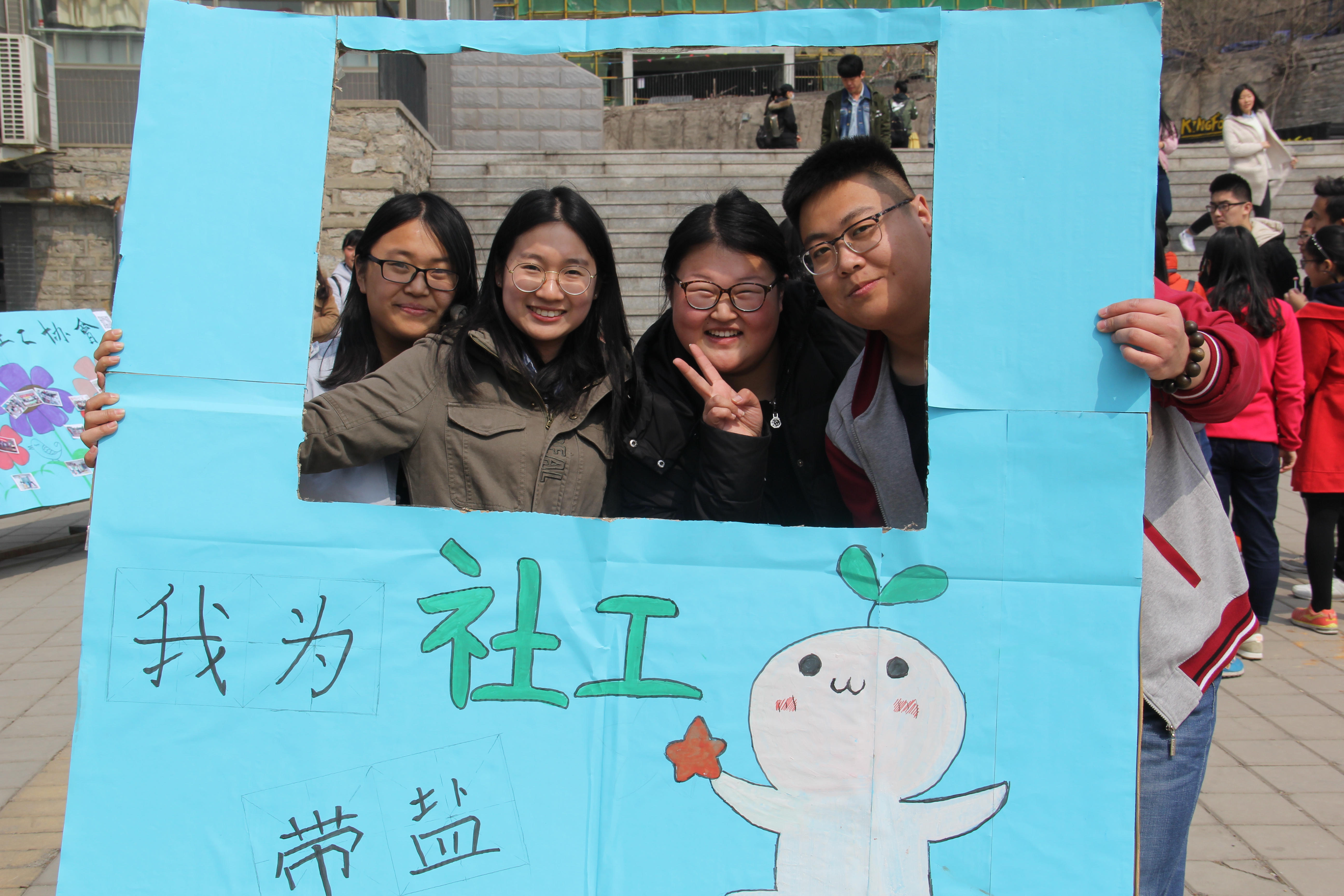 为向全校师生及社会各界人士更加广泛、深入的宣传社会工作,普及社会工作专业知识,我校晨之曦社工协会在第十一届“国际社工日”到来之际,为响应“社工日让社区更美好”的活动主题,3月21日,陆续开展了“山青求学路·社工伴你行”为主题的系列宣传活动。