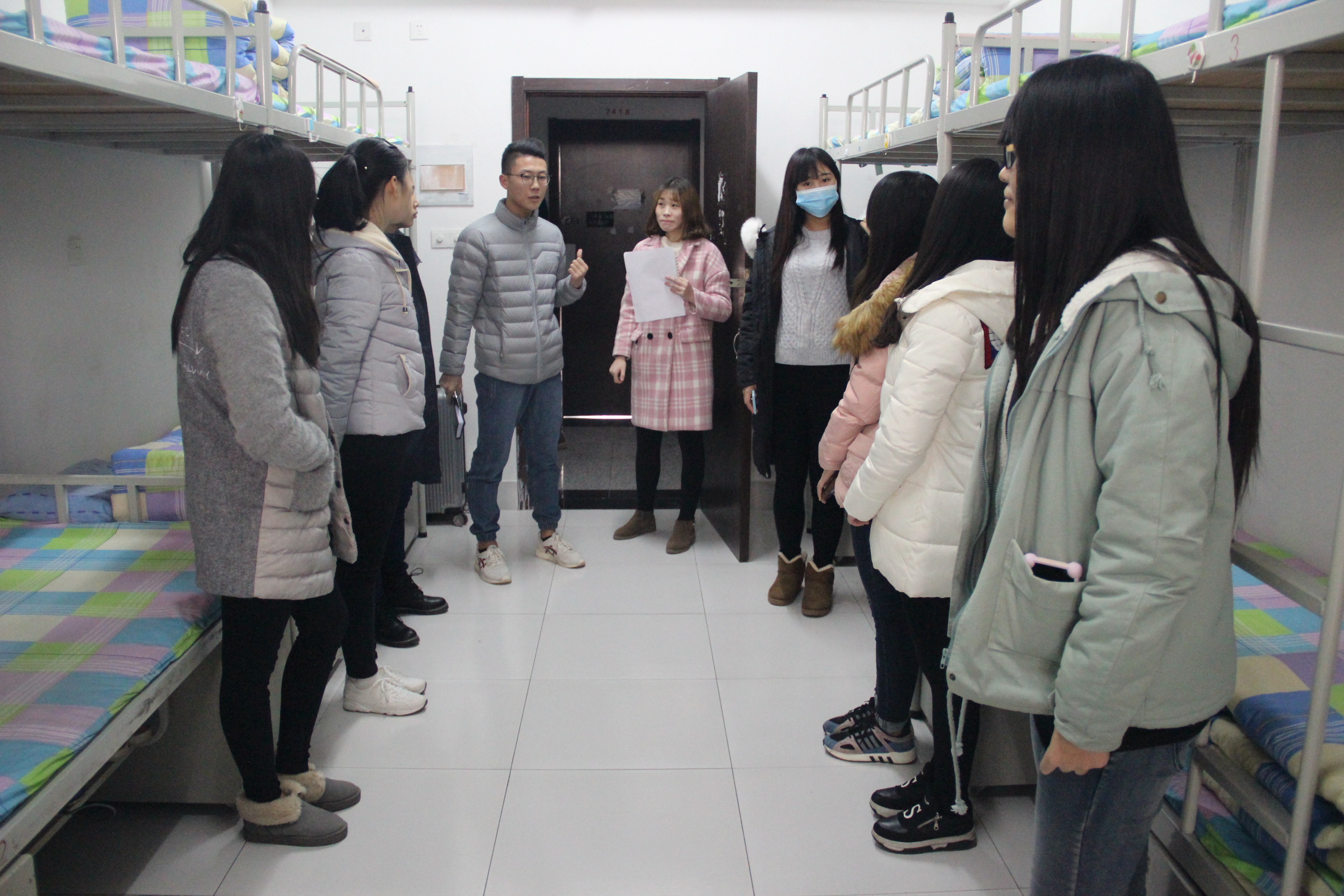 11月30日,“大家一起来找茬”活动则以宿舍间互查安全卫生问题的形式让同学们在趣味性游戏中牢记宿舍安全卫生标准。辅导员毛田惠、陈越男,公寓楼长房娣也进入宿舍,关心学生宿舍暖气供暖情况,查摆问题,消除宿舍隐患。