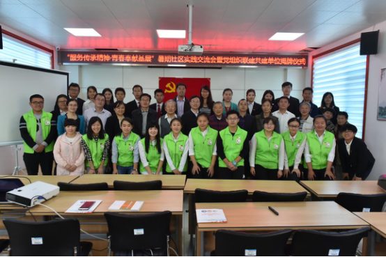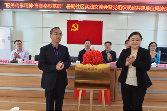 2016年10月14日上午,为充分发挥党组织的带动、示范、领导职能,探索高校和社区的合作领域和路径,拓展青年学生实习实践的平台,更好地引导青年服务基层,奉献社会,yl8858永利集团党总支和建筑新村街道办事处党工委在建筑新村街道办事处和平新村社区居委会举行了“服务传承精神·青春奉献基层”暑期社区实践交流会暨党组织联建共建单位揭牌仪式。共青团山东省委书记、学院党委书记张涛、共青团济南市委副书记王友进、建筑新村街道党工委书记包昆、共青团历下区委书记车金星、我校党委组织部副部长商和利、yl8858永利集团党总支书记于其欣、副书记丁萍出席了揭牌仪式,社区、教师及学生党员代表、项目社工、实践团队负责人等共计60余人参加了活动。仪式由包昆主持。