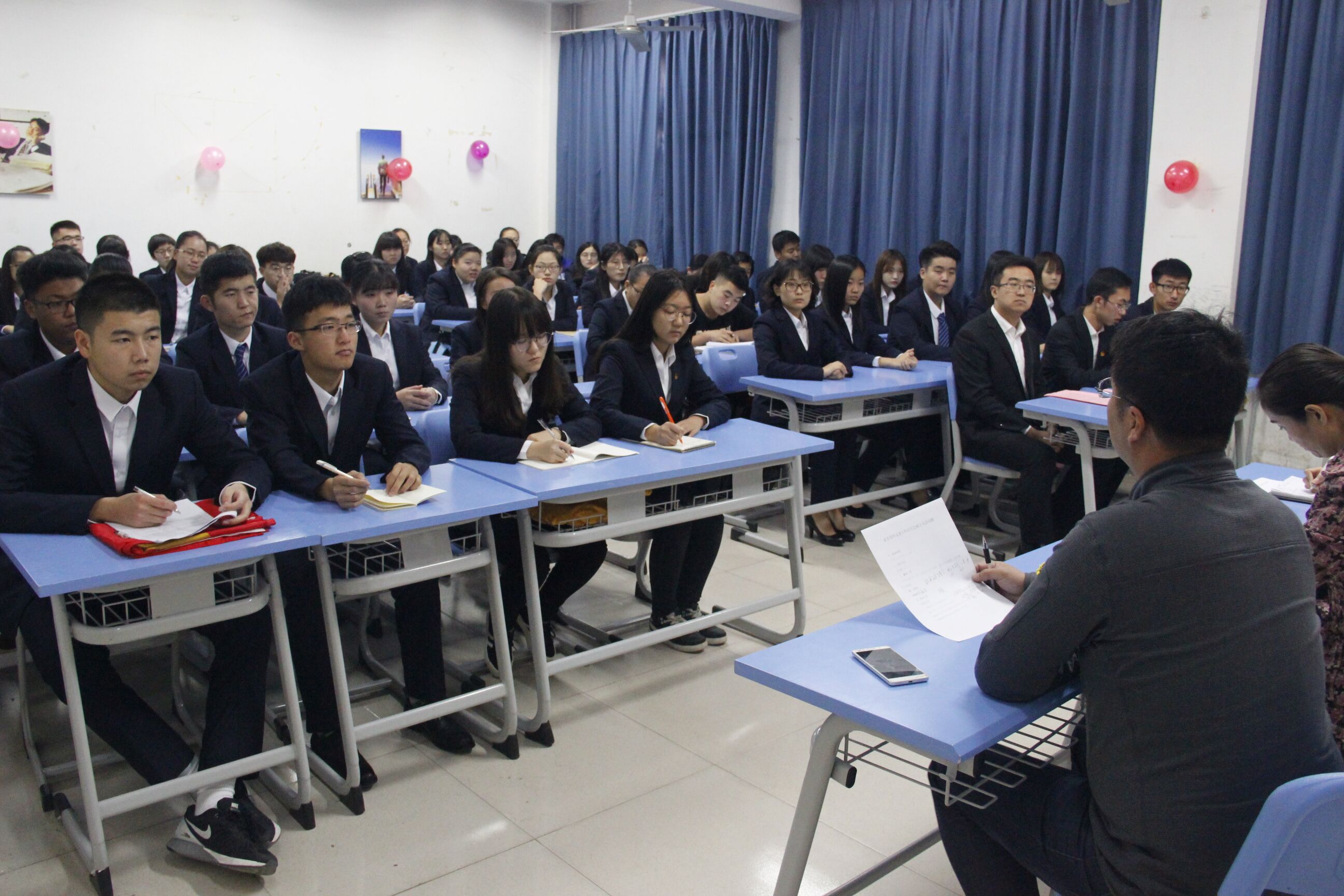 乔海波在总结讲话中指出,同学们要对丁书记所提出的两个问题展开思考和讨论,明确自己的工作职责,通过丁书记介绍如的何有效开展工作的四个方法来开展接下来的工作。最后,乔海波希望各位同学积极行动起来,振奋精神、勇往直前、求实创新、迎接挑战。最后,桑振博带领大家重温入团誓词,提高了团员、团干部对共青团的认同感。