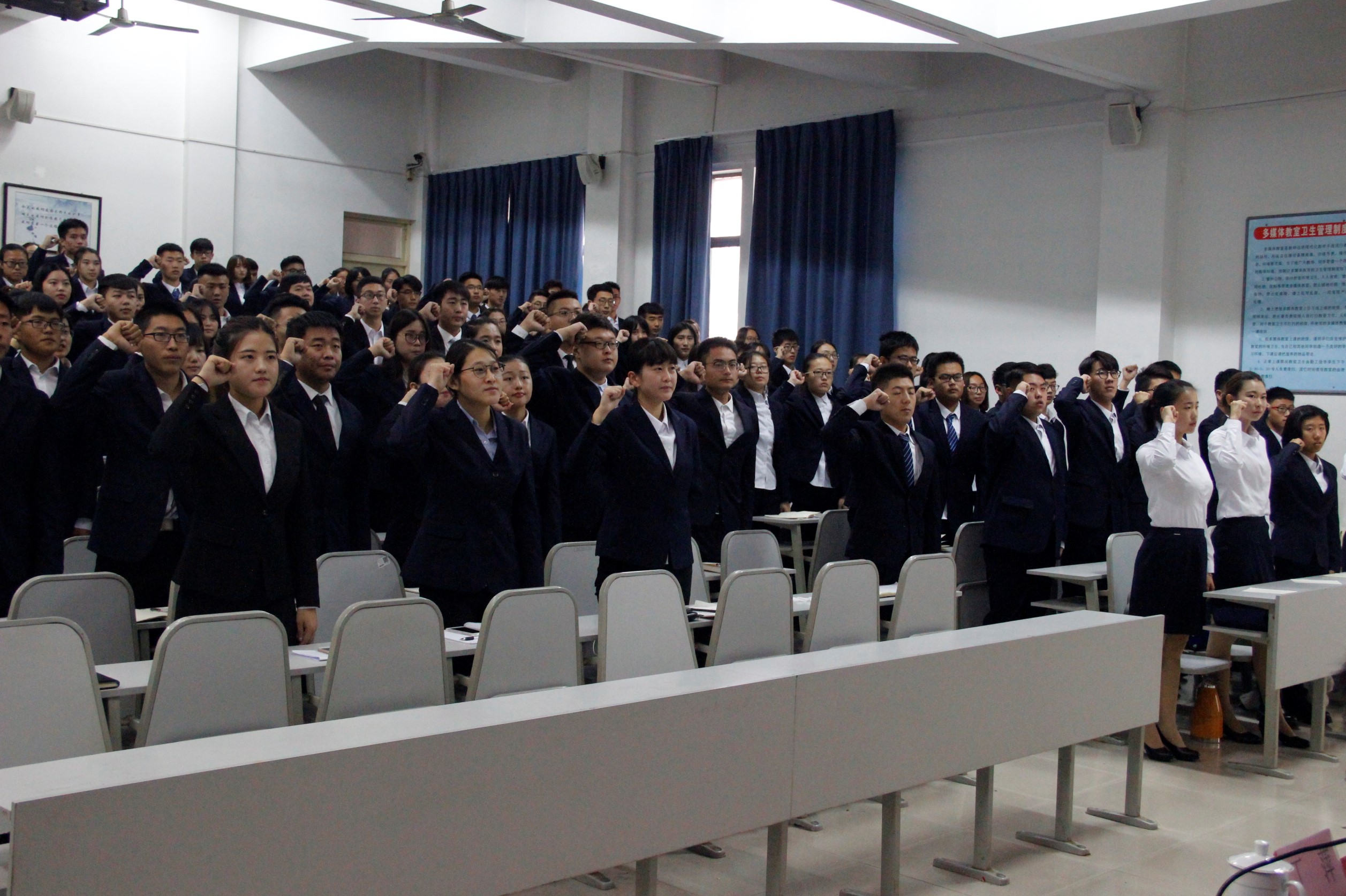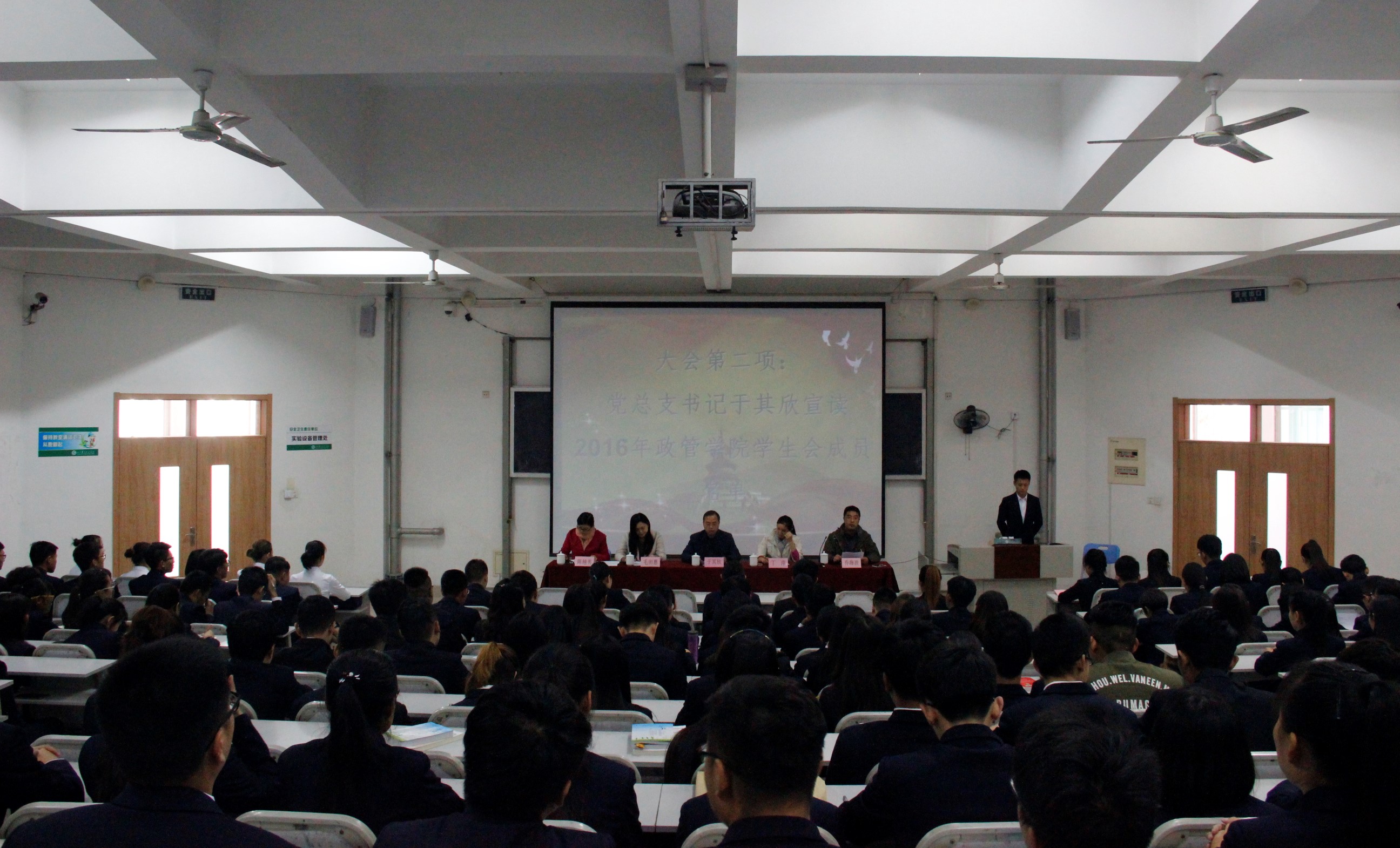 大会在庄严的国歌中拉开帷幕。会上,于其欣宣读了政管学院本届学生会成员名单,在观看上一届学生会风采后,杨彬做了上一届学生会工作报告。杜其君汇报新一届学生会发展规划,对未来一年的工作做了全方位的展望,将利用团组织优势,积极发挥社团作用,创新活动理念与方法,突出工作专业性、导向性,打造为同学服务、具有品牌特色、具有凝聚力量的学生组织。随后,牛沛垚带领全体成员宣誓。