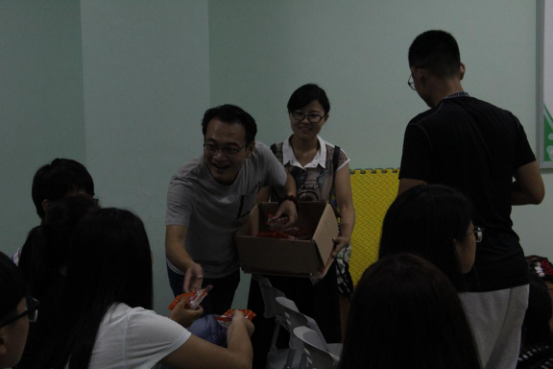 在祝福环节,老师们代表学校为同学们送上了月饼、水果和温馨的祝福,蒋涛涛更为大家亲情献唱,让同学们感受到家的温暖。蒋涛涛表示,大学是我们成长的关键时期,离开父母怀抱的我们首先应学会独立生活,他嘱咐大家,“活动后给父母打个电话,送上自己的祝福,让父母放心,告诉他们,我们在山青院过得挺好的!”丁萍表示,中秋节同学们虽然没有亲人的陪伴,但通过活动认识了更多的小伙伴,在相亲相爱的政管大家庭,依然可以感受到更多的爱和温暖。