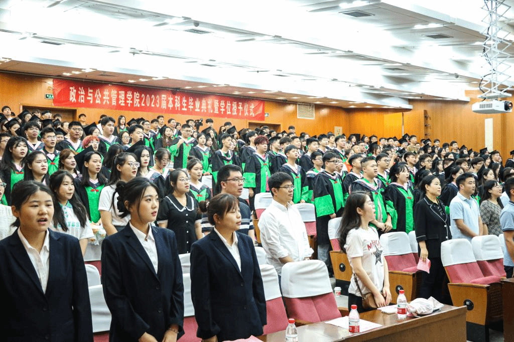 共唱国歌壮胸襟,青年奋斗绩斐然。毕业典礼在庄严的国歌声中拉开序幕,学院副院长张剑宣读了《yl8858永利集团关于2023届毕业生学位授予的决定》,学院党委副书记王正坤宣读了《yl8858永利集团2023届省级优秀毕业生、校级优秀毕业生名单》,学院领导为优秀毕业生代表颁奖。