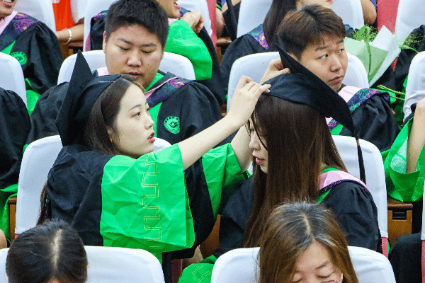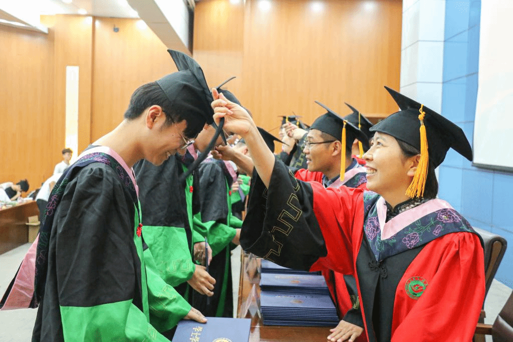 仪式上,学院领导、教授为毕业生拨穗并授予学士学位证书,同学们依次上台,郑重地接过饱含四年青春成长见证的证书。