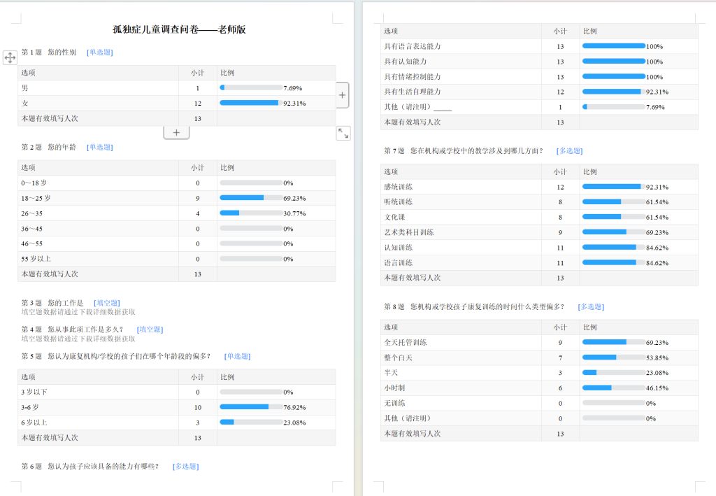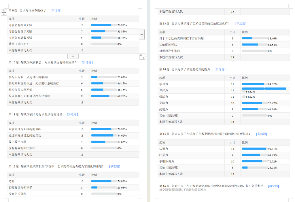 与此同时,团队成员通过问卷、访谈等方式,深入了解专业老师在开展艺术治疗时的具体情况,在进行问卷数据分析的基础上,将调研结果整理成文,形成详实的调研报告和服务改进方案。
