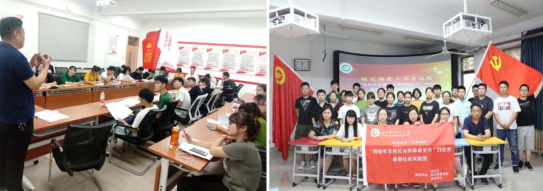 “铭记历史·不负远期——那些年支前民众的革命岁月”口述史调研是政管学院为庆祝中华人民共和国成立70周年重点打造的暑期社会实践项目,项目计划将昔日支前活动中珍贵感人的记忆用口述史的形式记录,真实再现解放战争时期山东群众拥军历史,深入挖掘支前运动的当代教育意义,引导学生铭记革命历史,传承红色基因,用“支前精神”为学生补足精神之钙,提高“青年政治”素养,为新时代建设贡献青春力量。