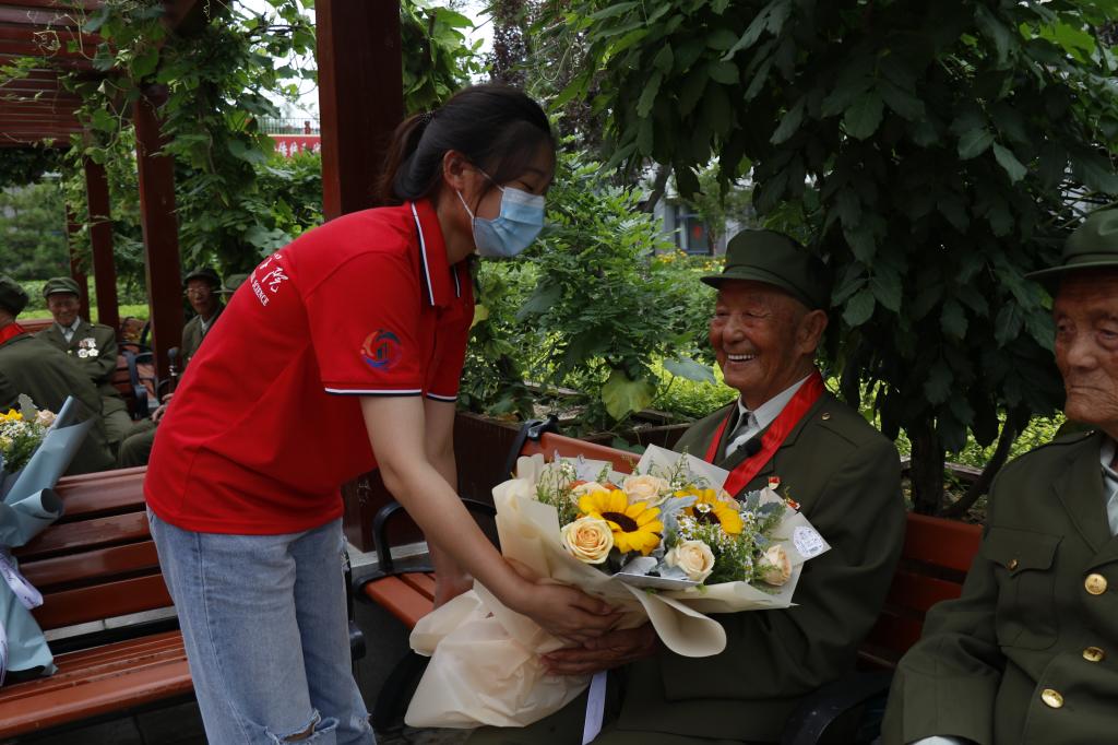 实践团在带队老师庞翠的指导下相继开展了革命老兵寻访、主题团课录制、调研访谈等活动。7月26日,实践团前往延安八一敬老院探访了革命老兵,作为“活着的英雄教科书”,他们身上承载着延安革命历史,近70年党龄的高志昌、李福功两位老兵向实践团讲述了他们参加过的兰州战役、蟠龙战役等战役,虽然两位老兵已近90岁高龄,但在谈到当时跟随彭德怀司令作战的时候,老人仍旧情绪激动。两位老人向实践团各位青年寄予热切的期望,希望青年们能够珍惜现在来之不易的生活、坚定不移跟党走、为新时代的社会主义现代化强国而接力奋斗,实践团成员对革命英雄的抗战故事既感动又敬佩,向各位革命英雄承诺,坚定理想信念,在今后的学习生活中一定承担新时代青年的使命、为国家、为人民贡献自己的青春力量。