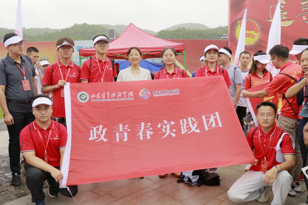 参观结束后,“政青春”实践团与其他53支团队共同列队参加了暑期社会实践活动出征仪式,延安市委常委统战部部长杨宏兰、团中央青年发展部何蕾、南泥湾开发区党工委副书记折克银等领导参加了出征仪式。实践团的同学们与延安市委常委统战部部长杨宏兰亲切合照。