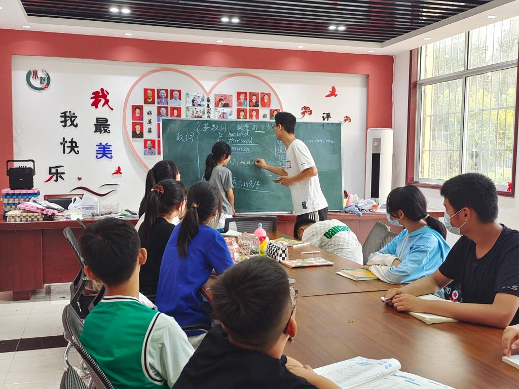 实践期间,课业辅导也是志愿团队开展的主要内容之一,辅导范围主要围绕当地青少年学生所学语文、数学、英语等课程开展辅导。帮助他们养成良好的行为习惯、习得科学学习方法,也避免暑期内因为无人照看而带来的一些安全隐患发生,让他们度过一个快乐暑假,同时也让大学生志愿者得到充分锻炼。