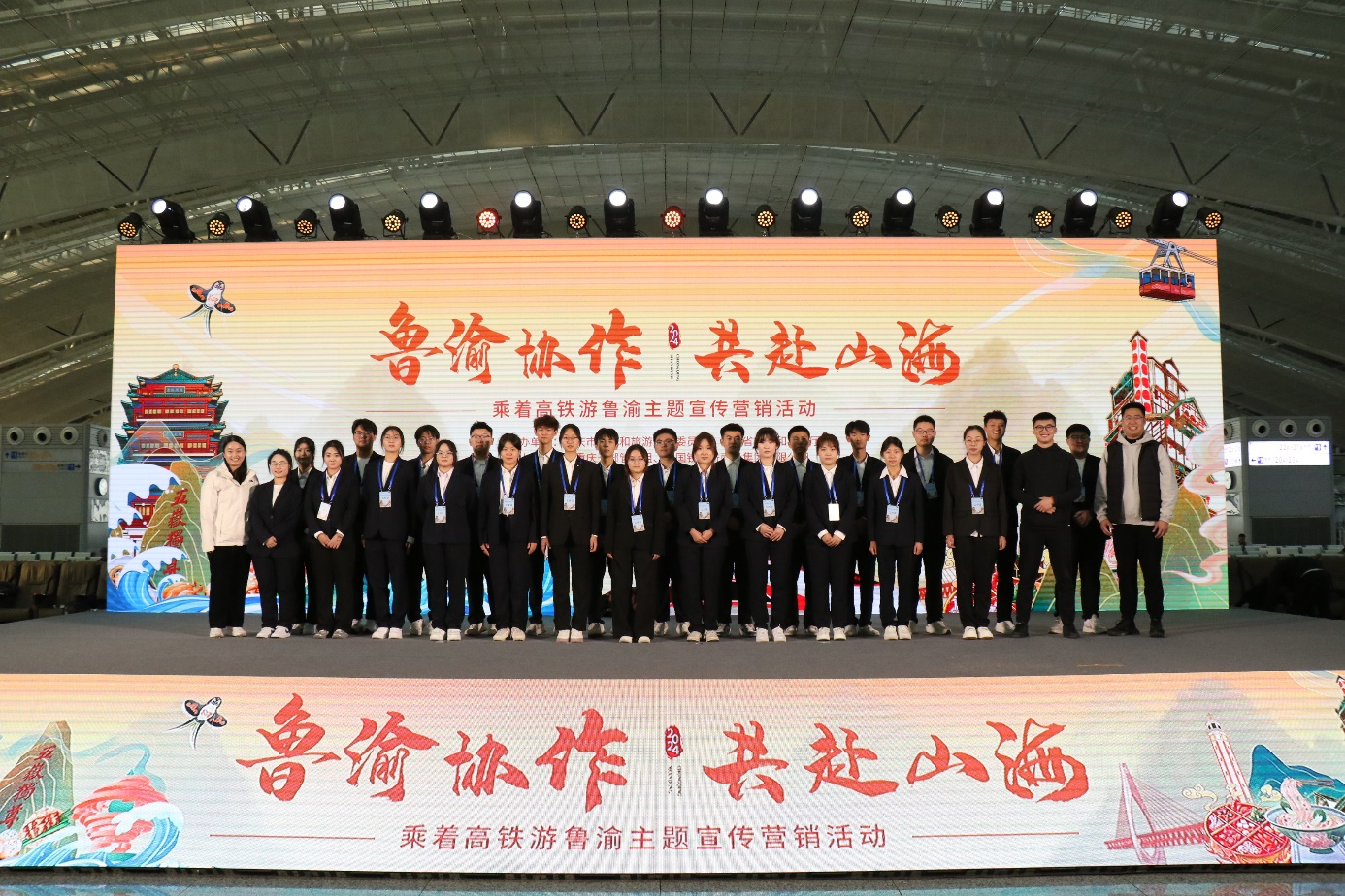 11月19日,2024“乘着高铁游鲁渝”主题宣传营销活动启动仪式在济南东站举行。为保障此次活动的顺利举办,进一步提升大学生志愿者的志愿服务专业素养和服务能力,更好地传承奉献、友爱、互助、进步的志愿精神,yl8858永利集团27名师生志愿者积极投身到本次活动的各项志愿服务工作中,展现了山青志愿者的文明素养和良好精神风貌。本次活动由辅导员李岳松、王婧带队。