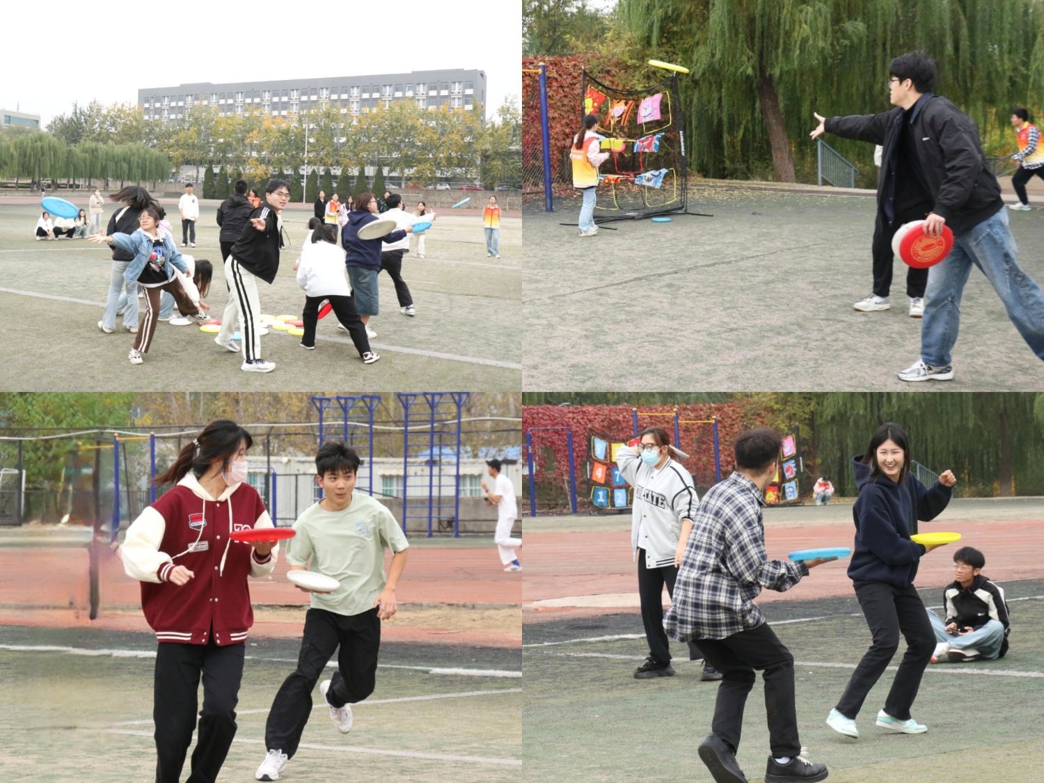 本次活动项目包括“飞盘传递、飞盘接力投篮、飞盘九宫格、飞盘保龄球、服务生大战、仓鼠过冬”等环节。参加活动的同学们热情高涨、现场氛围热烈,沉浸式体验飞盘运动的乐趣,也感受着相互鼓励、相互支持,共同克服困难的良好氛围。