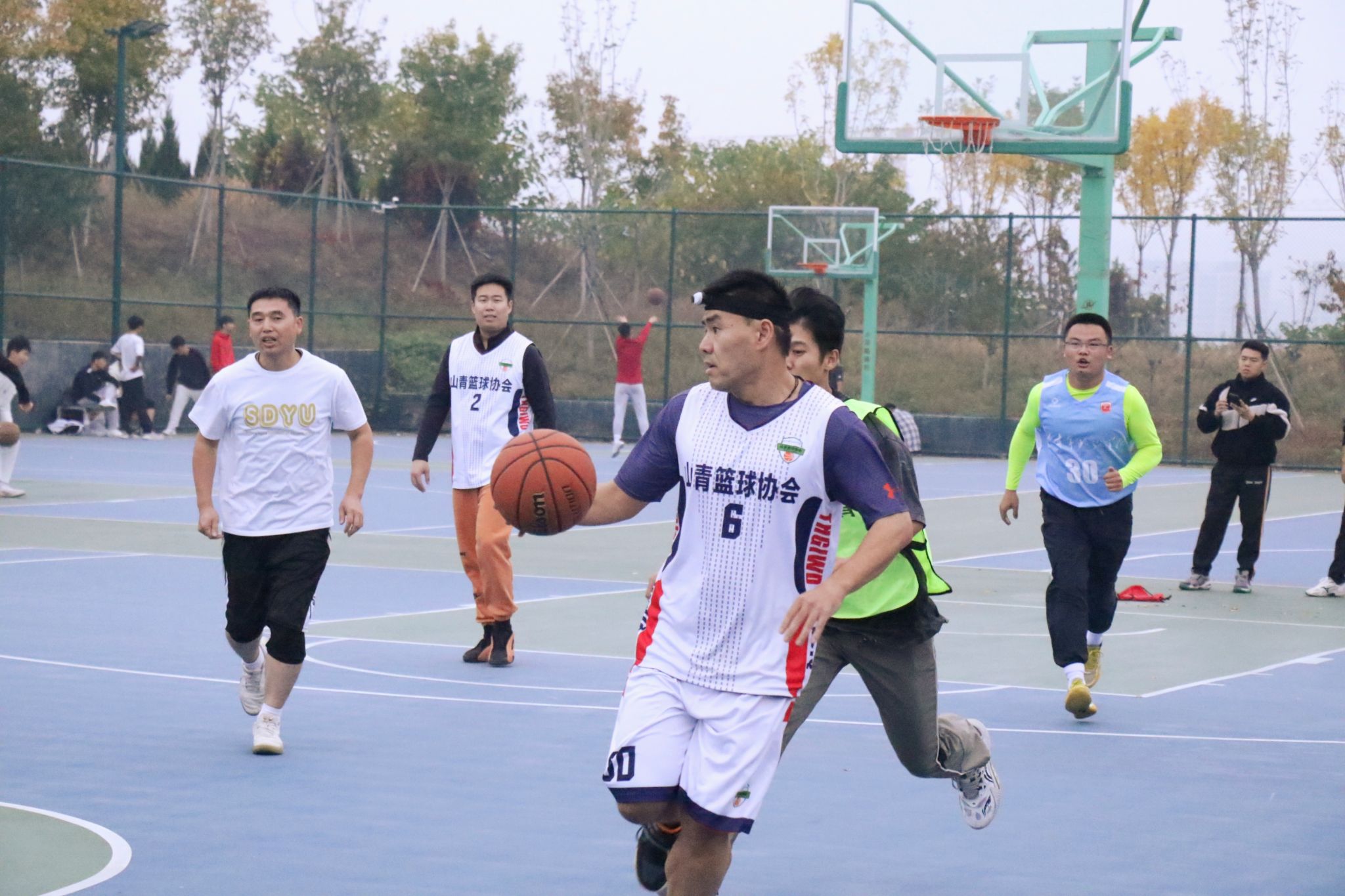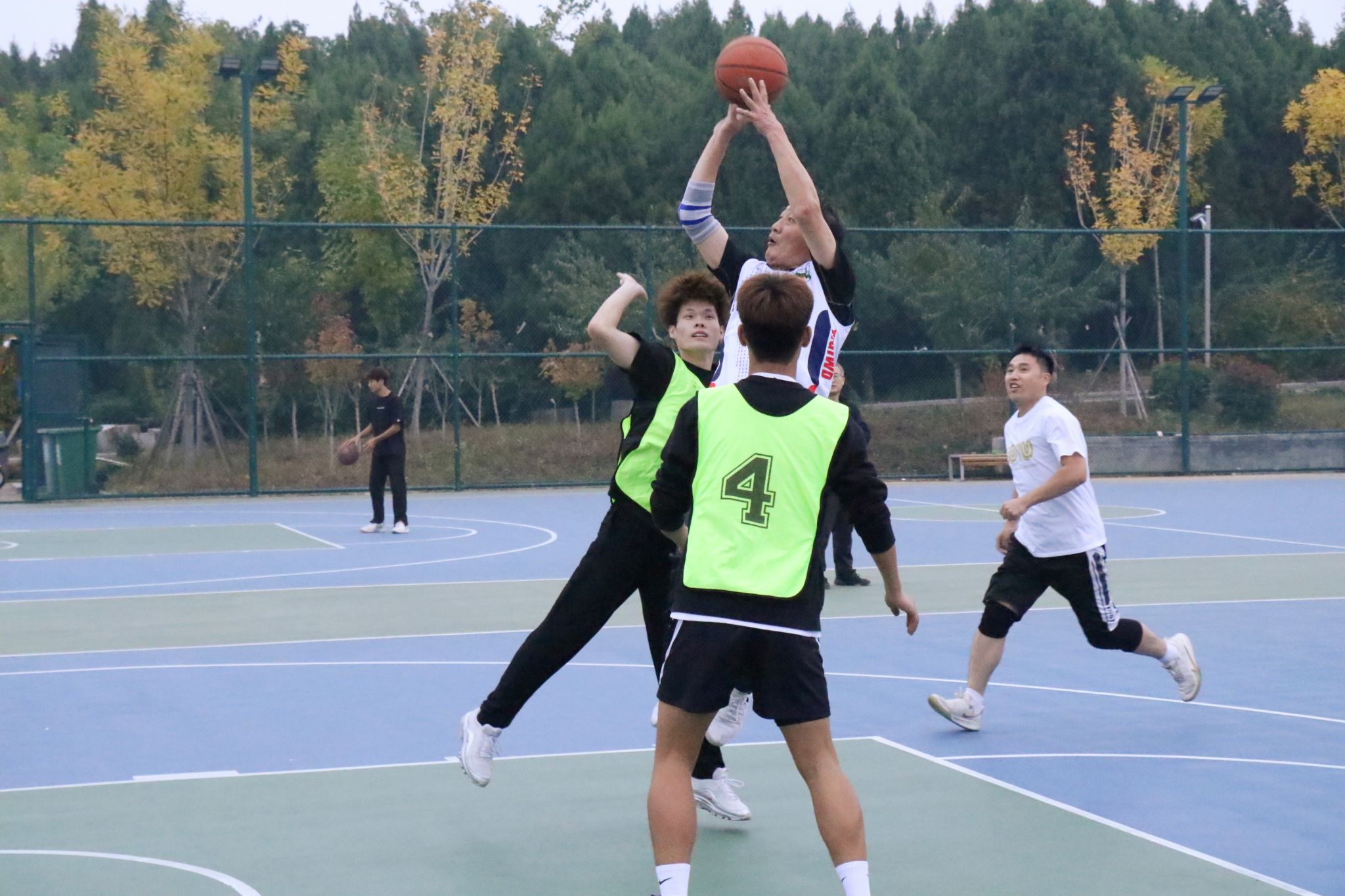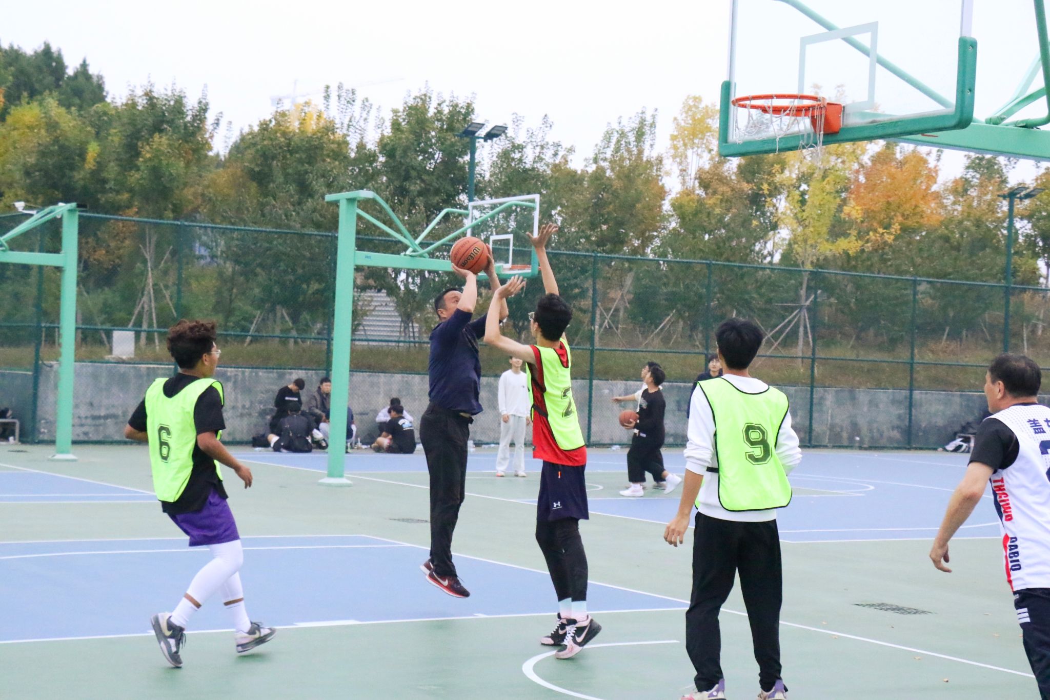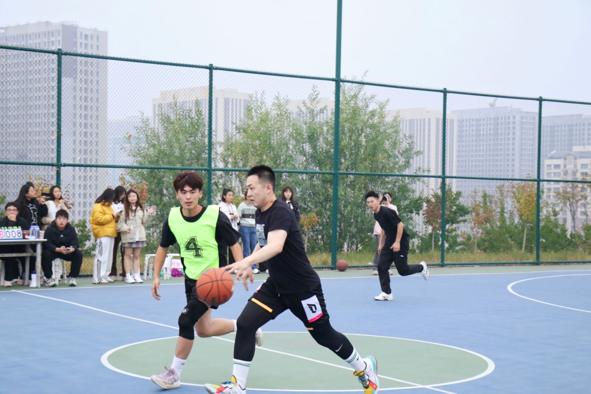 师生友谊赛于10月24日、31日举行。各学院选派2名新生代表组成新生联队,与学校教职工篮球队进行了2场友谊赛。比赛中,师生队员们精神饱满、敢打敢拼,迅速进入状态。老师们身体力行,用丰富经验和高效的配合牵制着新生联队的攻守表现,而新生们则展现出了非凡的活力和冲劲。赛场上,师生们互相鼓励,共同进步,虽然对抗激烈,但不失文明友谊,诠释了“大手拉小手”“师生共融,篮球传情”的精神内涵。最终,教职工代表队凭借更为强劲的整体实力获得两场比赛的胜利。