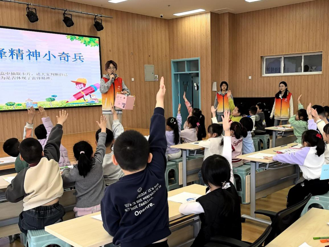 活动现场,志愿者们用生动有趣的语言和形象的图片、故事,向小朋友们讲述了雷锋的生平事迹。从雷锋帮助战友缝补衣服到他在雨中护送老奶奶回家,一个个感人的故事让小朋友们听得津津有味。宣讲会还设置互动问答和游戏环节,在增强小朋友们参与感和互动性的同时,有效帮助其更好地理解了雷锋精神的深刻内涵。
