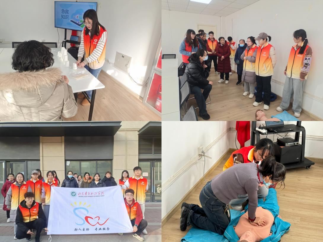 此外,晨之曦社工协会等学生社团还积极链接校外资源,前往社区开展宣传科普活动。在唐冶街道龙湖春江郦城社区,志愿者组织开展“悦享桑榆·安救同行”急救知识科普活动,通过“趣味游戏+专业科普+实操练习”的形式为老年人普及急救知识、传递温暖关怀,并在活动中积极传播社会工作相关知识,提升社区大众对社会工作专业的认知。
