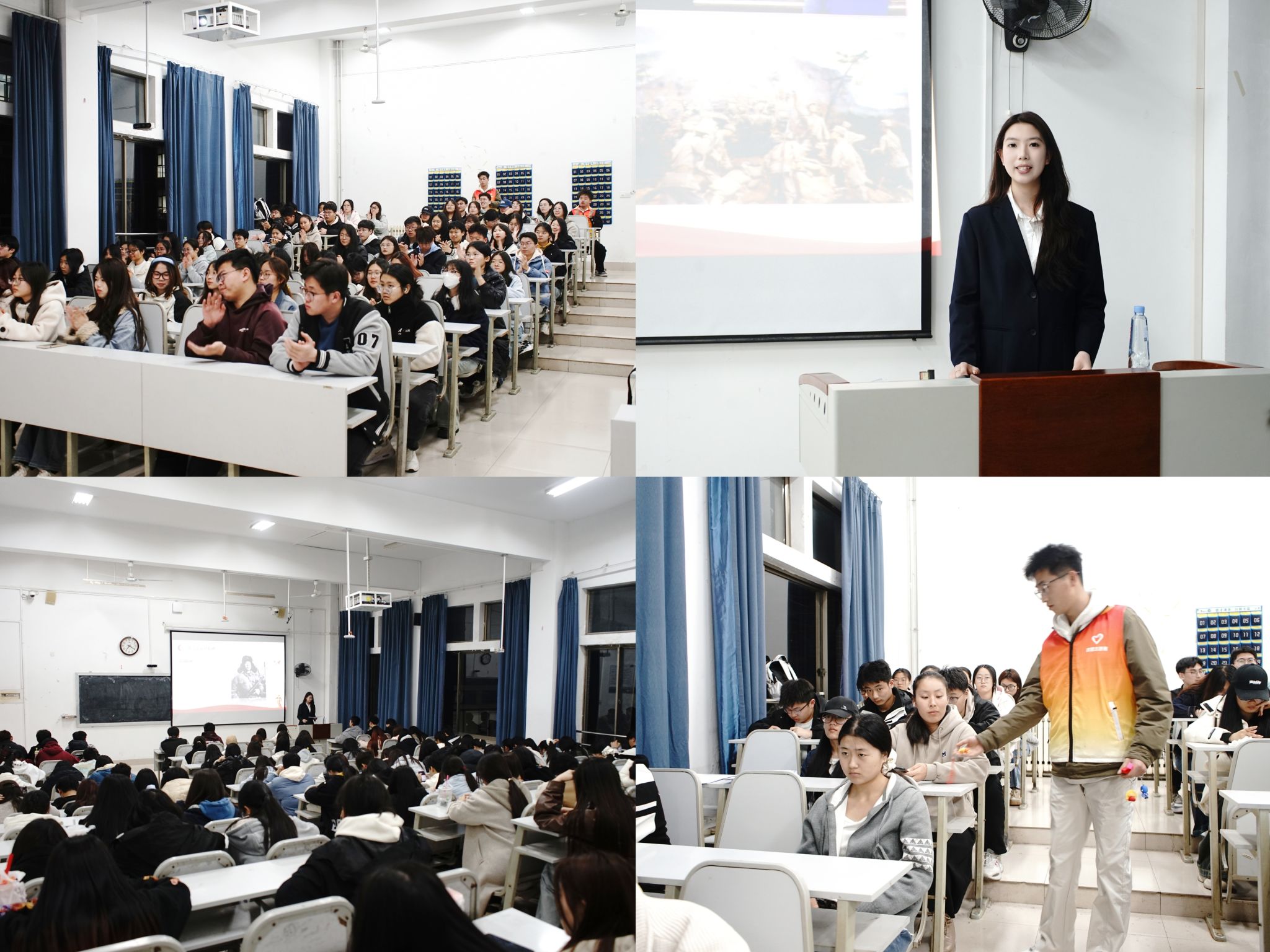 本次宣讲围绕“传统美德的薪火相传”“雷锋精神解析”“时代内涵与回响”“当代实践路径”四个部分展开。志愿者通过名词解析、视频播放、案例分析等方式,就仁、义、礼、智、信等传统美德的具体含义和雷锋精神的深刻内涵进行了系统讲解,并带领同学们深入探讨了中华传统美德与雷锋精神的深层关联。随后志愿者聚焦实践维度,以大学生自我管理服务委员会的日常工作为例,深刻阐述了雷锋精神的当代实践路径,揭示了“人人皆是雷锋传承者”的行动真谛。在活动过程中,还设置有奖问答环节,实现了知识传递与参与热情的双向激发。