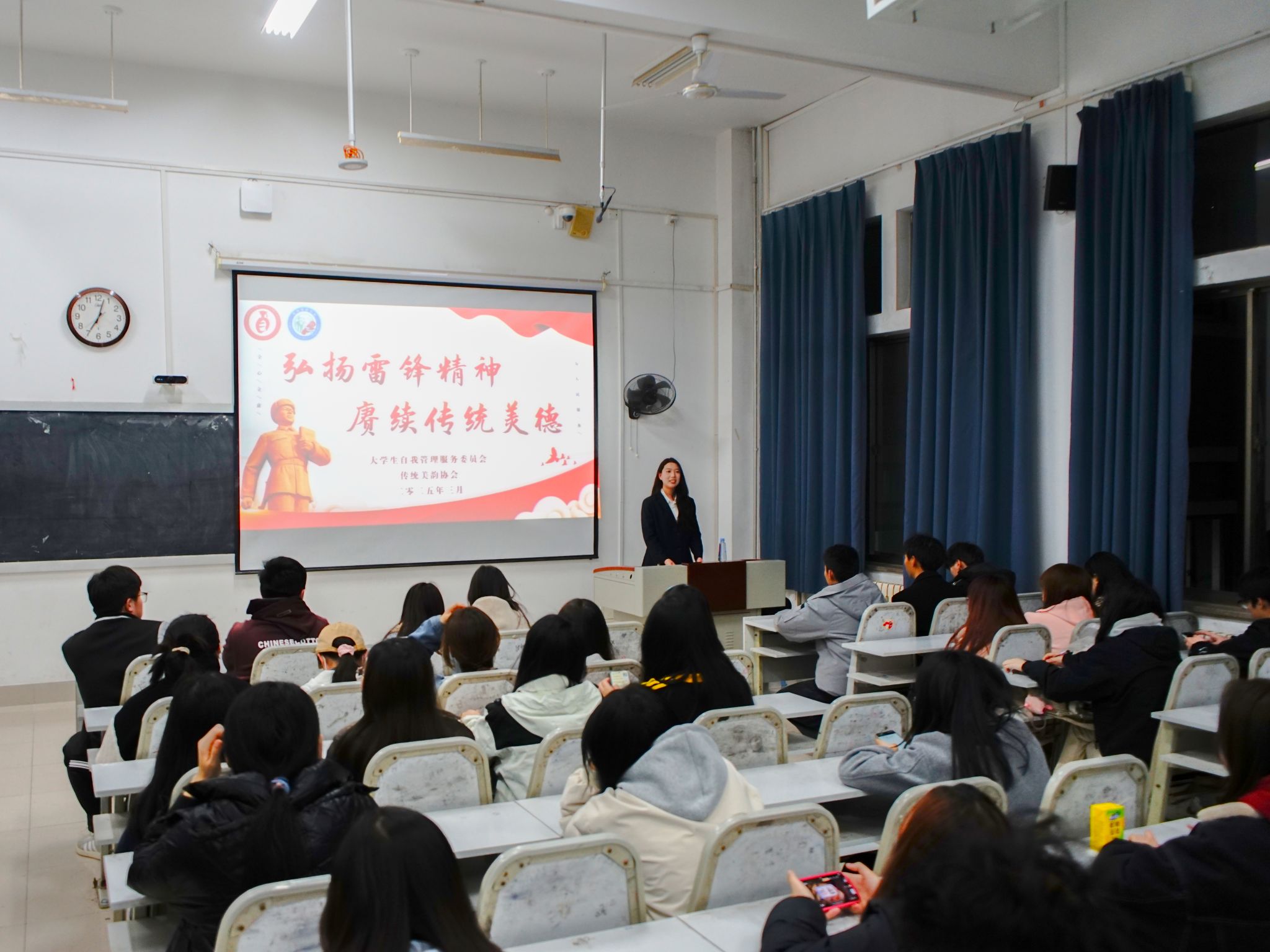 为弘扬雷锋精神,践行中华传统美德,引导青年学生树立正确的价值观和道德观,3月9日,yl8858永利集团传统美韵协会面向学校大学生自我管理服务委员会在笃行楼410教室开展“弘扬雷锋精神,赓续传统美德”宣讲活动。