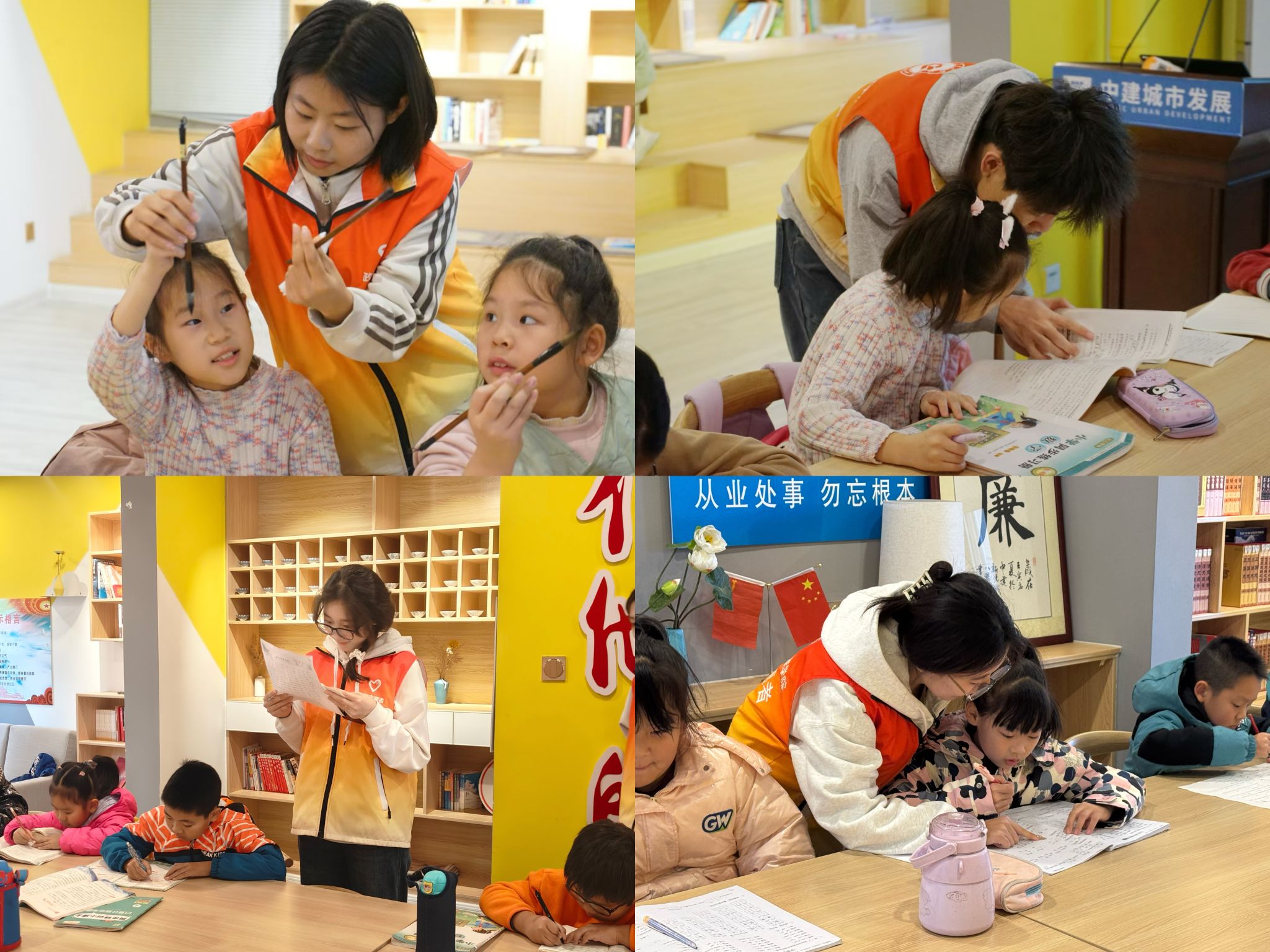 “周末课堂”双职工子女关爱赋能志愿服务项目自2024年4月启动,以“课内辅导+趣味拓展”为双核驱动。在“课内辅导”环节,项目团队聚焦学科知识结构化建构,通过系统化作业解析、重难点模块化拆解及个性化学习策略指导,帮助青少年梳理学习内容,夯实学科基础,引导其养成良好的学习习惯,增强青少年学习自主性和自信心,建立“自我诊断-认知迭代-效能提升”的良性学习循环;“趣味拓展”依托主题式成长课程体系,项目团队根据服务对象需求和社会时事热点进行课程设计,积极链接学院传统美韵协会的传统文化资源,将国学知识解码、社会交往情境模拟、心理韧性训练及生命价值探索等内容转化为互动游戏、角色扮演等沉浸式学习场景,在寓教于乐的课堂中拓宽孩子们的知识视野,于妙趣横生的游戏中丰富孩子们的精神世界,为孩子们搭建起轻松愉快的成长平台。