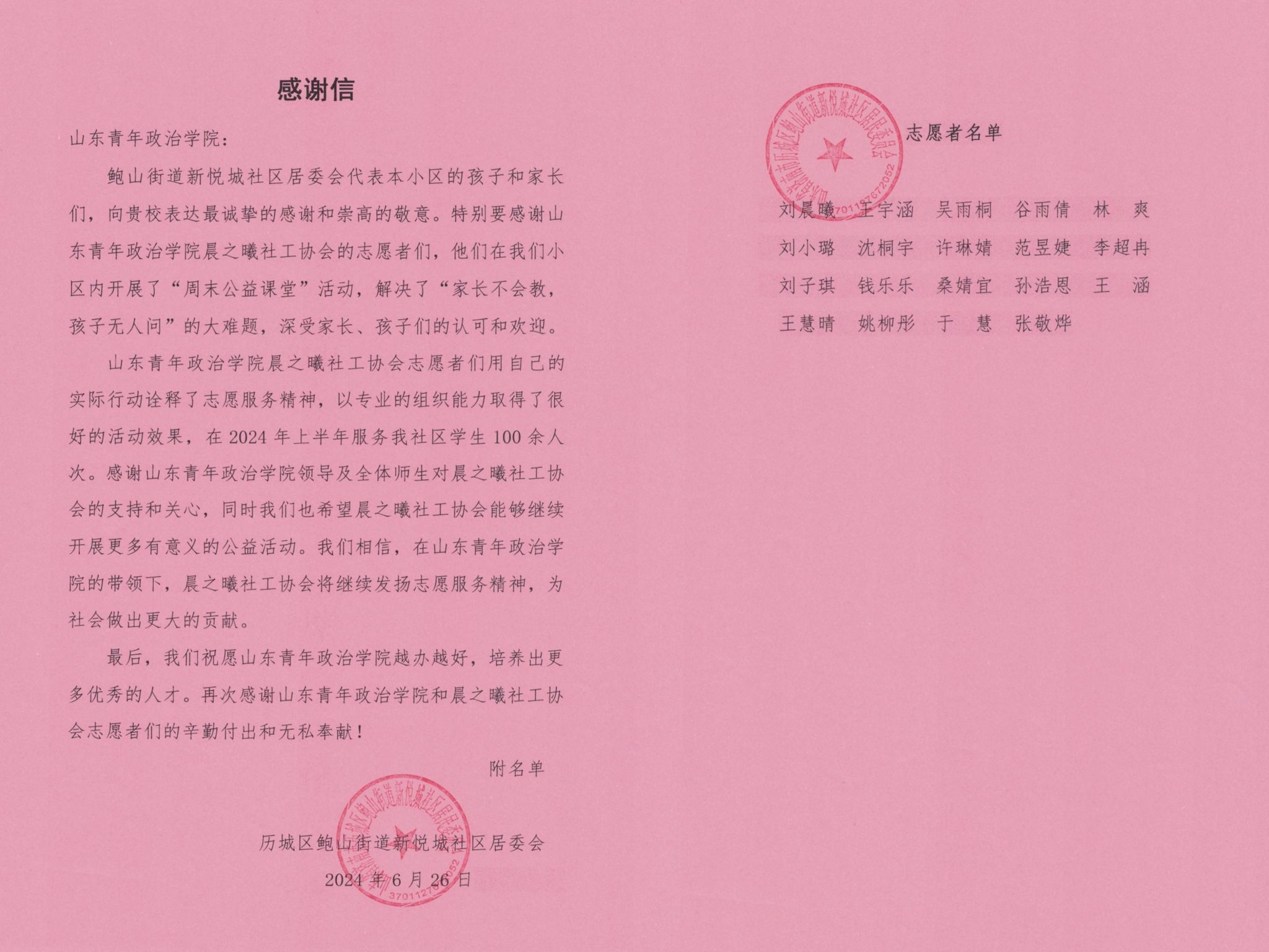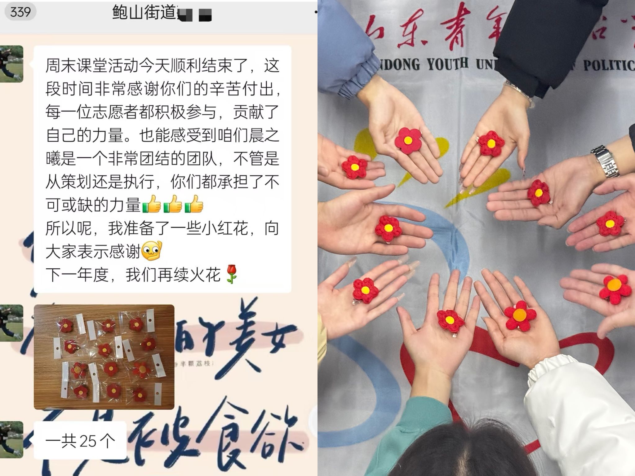 项目开展期间成果丰硕,累计开展12次专项服务,动员43人次志愿者投入163.3小时精准服务矩阵,惠及143名双职工子女,形成了“服务数据可视化、社会效益可量化”的实践范式,获得了社区、家长及青少年儿童的积极反馈与高度赞扬。社区家长评价其“有效破解双职工家庭‘辅导真空’难题,同步实现知识扩容与素质跃升,真正践行‘成长不缺席,教育有温度’的育人理念”。此外,项目团队还获颁鲍山街道社工站“优秀志愿者”证书、感谢信及“小红花”荣誉勋章,彰显了志愿服务从“需求回应”到“价值共生”的进阶式发展路径。