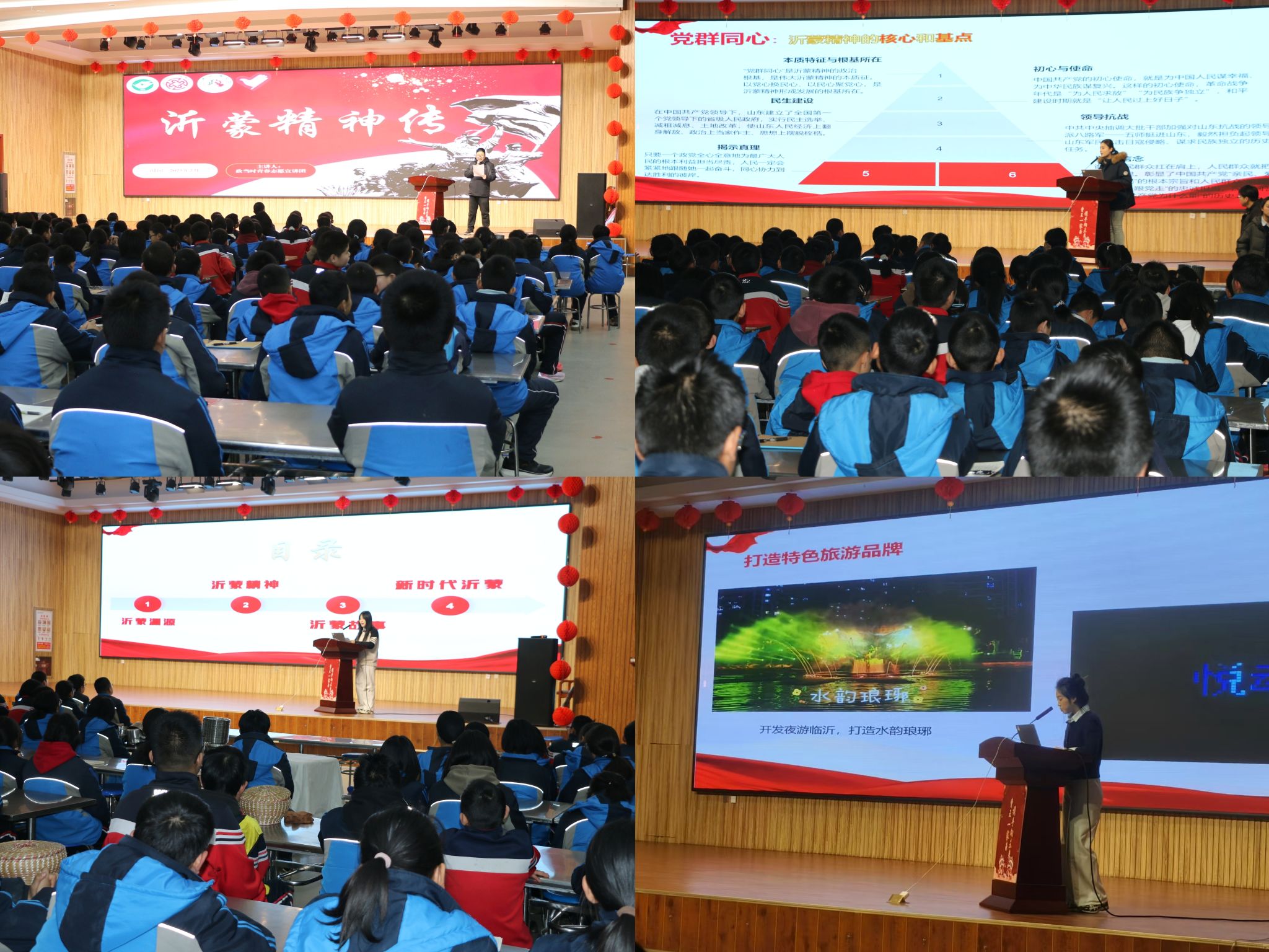 宣讲团成员们以专业的素养和满腔的热情,从沂蒙地区的深厚历史渊源讲起,深入阐述了沂蒙精神在革命战争年代所发挥的巨大作用。从“沂蒙母亲”王换于用无私母爱呵护革命后代,到刘永良同志“一门三烈忠心报国”,再到新时代沂蒙楷模——沂蒙新红嫂于爱梅、最美兵妈妈朱呈镕以及“中国的保尔·柯察金”朱彦夫,这些故事不仅展现了沂蒙儿女对革命事业的坚定支持和无私奉献,更彰显了沂蒙人民在不同历史时期对党的忠诚和对革命事业的执着追求,这些感人至深的沂蒙故事生动诠释了“党群同心,军民情深,水乳交融,生死与共”的深刻内涵。