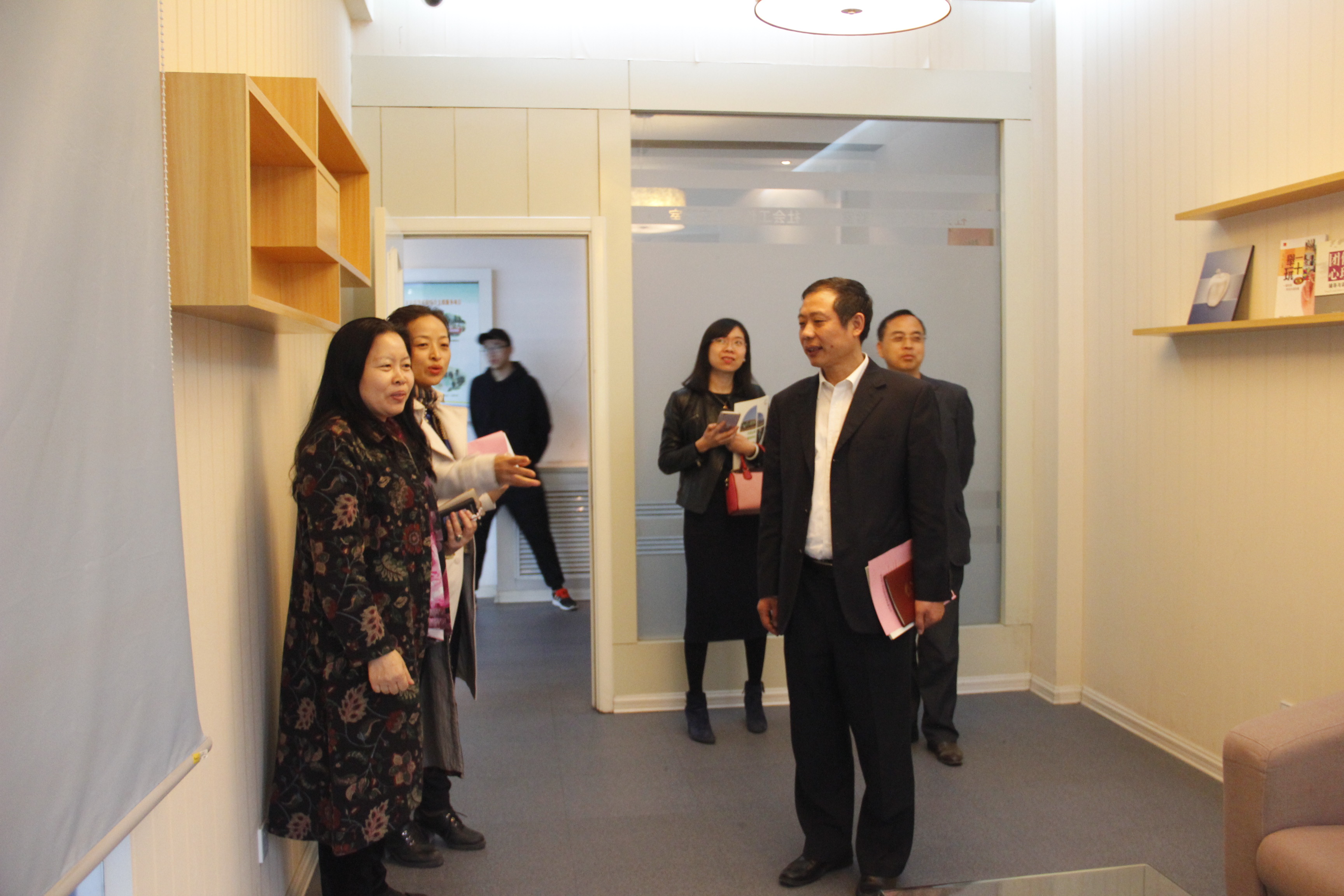 座谈会后,栾驭一行参观了社会工作实验室,王玉香院长向他们详细介绍了实验室的主要功能和教学应用情况。