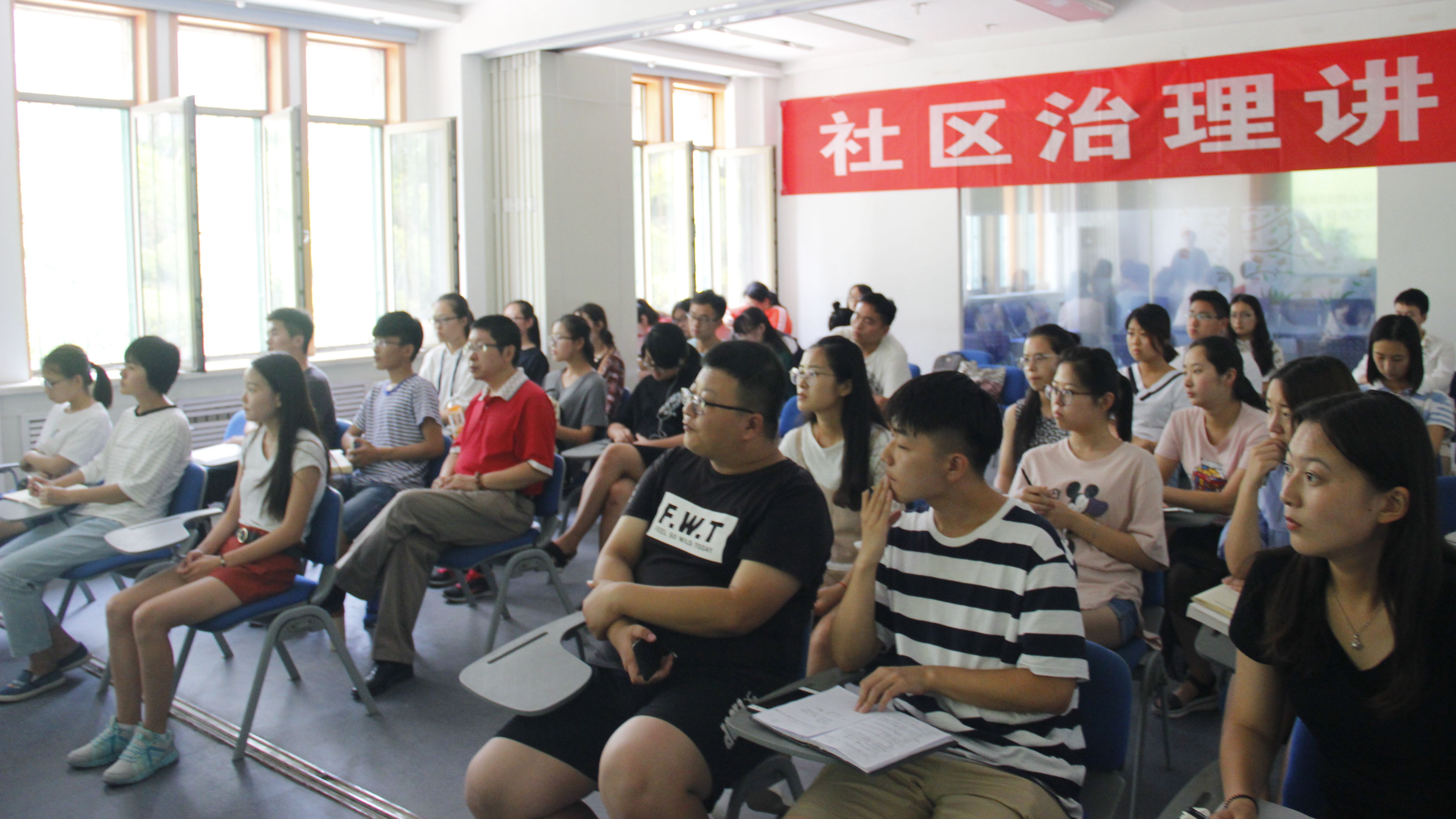 讲坛上,田志梅围绕“社区治理相关概念的界定”、“以社区减负为切入点推进社区治理创新”、“以完善社区治理体系为着力点推进社区治理创新”、“以健全社区治理机制为关键点推进社区治理创新”、“以提升社区治理能力为重点推进社区治理创新”等五个方面详细介绍了当下社区治理的政策探究与实践成果。首先,她明确解释了“社区”与“治理”的传统定义与新内涵,社区治理具有主体多元、注重协商、居民参与、多维治理这四个主要特征。随后,她谈到,目前社区居委会负担过重,要通过建立社区工作事项准入制度,清理组织机构、精简社区台账、规范社区挂牌和印章使用管理等方法为社区进行减负。最后,她提出,要建立健全以居民自治为基础、以多元参与和民主协商为主要特征的社区治理机制,实现政府治理、社会调节和居民自治良性互动。本次论坛最后的交流环节,在场同学踊跃发言,田志梅做了详细解答,现场气氛十分活跃。