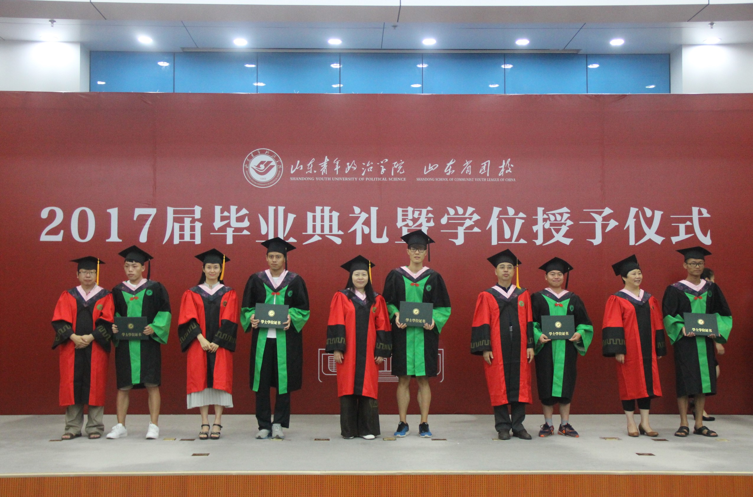 毕业典礼在庄严的国歌中拉开帷幕。于其欣宣读了省级、校级优秀毕业生表彰决定,学院领导为优秀毕业生颁奖并合影留念。
