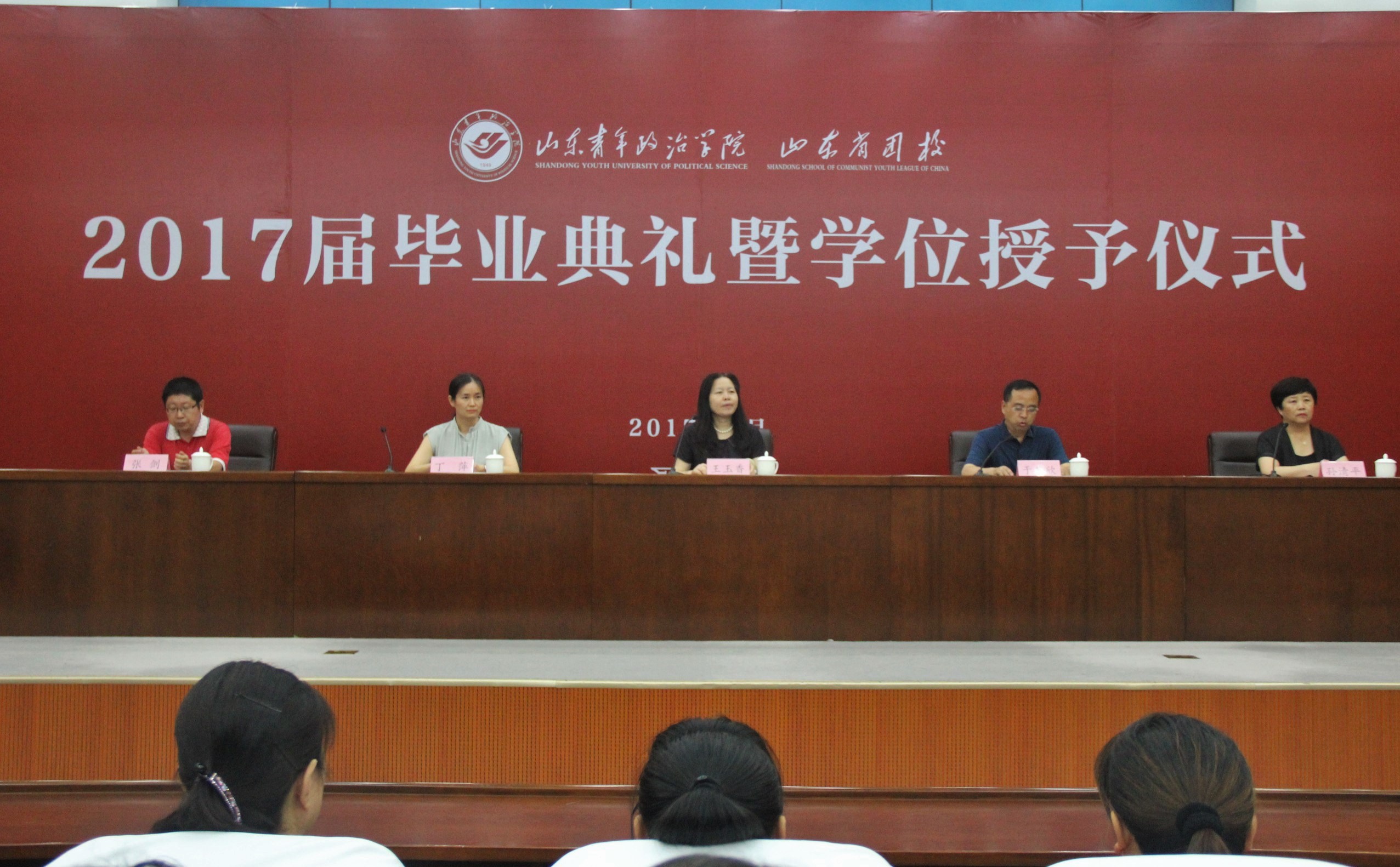 6月21日下午,我院2017届毕业典礼暨学位授予仪式在学术报告厅隆重举行。政管学院院长王玉香、党总支书记于其欣、党总支副书记丁萍、心理教研室主任孙清平、社会工作教研室主任张剑出席活动,毕业班班主任、任课教师、辅导员、毕业学生家长代表、2017届本科毕业生、在校生代表参加活动。活动由于其欣主持。