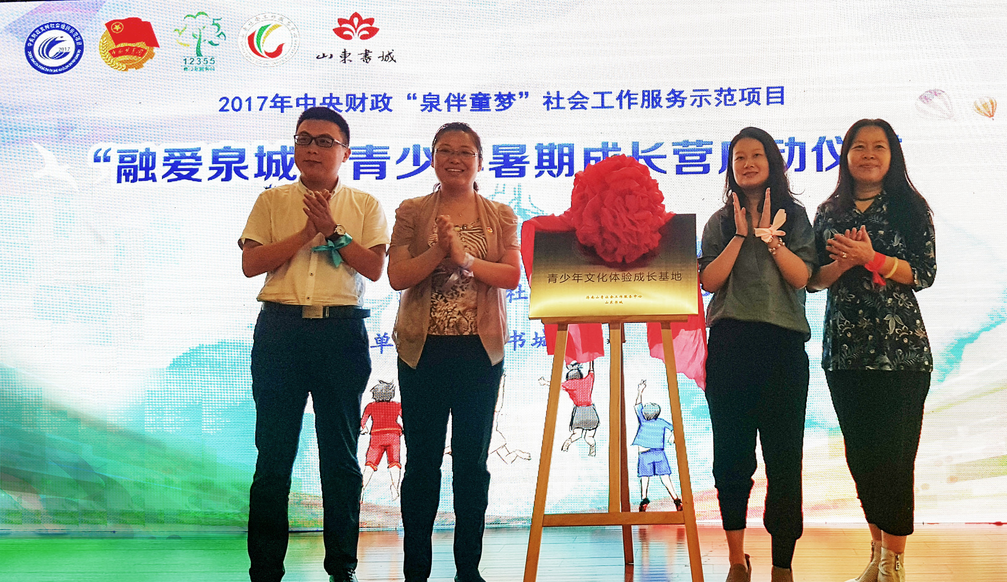 2017年7月25日上午,由山东省12355青少年服务台、济南山青社会工作服务中心联合主办的“融爱泉城”流动青少年暑期成长营暨2017年中央财政支持“泉彩童梦”流动青少年城市关系调试社会工作示范项目暑期服务启动仪式在山东书城举行。共青团山东省委权益部副部长张梓涵,共青团济南市委副书记徐冬梅,共青团yl88858永利中国委员会副书记范红伟,共青团山东出版集团委员会书记张祝彬,共青团市中区委副书记曹雪莲出席此次活动。yl8858永利集团院长、济南山青社会工作服务中心理事长王玉香,济南山青社会工作服务中心总干事孙成键以及部分项目社工、高校志愿者以及社区青少年共同参加了此次活动。