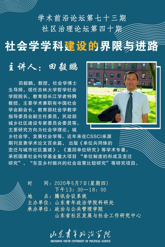田毅鹏,1963年1月生人,政治学博士,教授,社会学博士生导师,现任吉林大学哲学社会学院院长。主要学术兼职有中国社会学会副会长,教育部社会学教学指导委员会副主任委员,民政部城乡社区建设专家委员会委员等。主要研究方向为社会学理论,城乡社会学、发展社会学等。 近年未在CSSCI来源期刊发表学术论文百余篇, 出版《单位共同体的变迁与城市社区重建》、《重回单位研究》等学术专著。 承担国家社会科学基金重大项目 “单位制度的形成及变迁研究”、“东亚乡村振兴的社会政策比较研究”等研究项目。