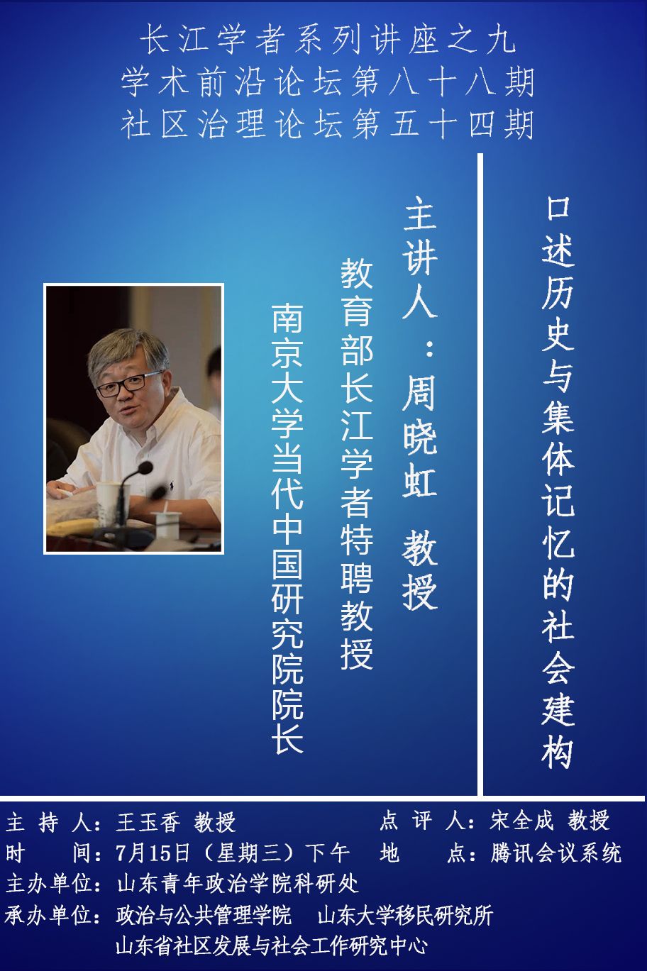 周晓虹,1957年生于杭州。自1977年起先后考入南京医学院医学系、南开大学社会学系和南京大学历史学系,并获学士、硕士和博士学位。曾任南京大学社会学院院长(2008-2017)、中国社会心理学会会长(2014-2016),现为南京大学当代中国研究院院长、人文社会科学资深教授、教育部长江学者特聘教授,并兼任国务院社会学学科评议组成员、中国社会学会副会长、国家社会科学基金学科规划评审组专家。先后出版《传统与变迁:江浙农民的社会心理及其近代以来的嬗变》《西方社会学历史与体系》《文化反哺:变迁社会中的代际革命》、Chinese Studies from the Perspective of Globalization等著译作30余部,在《中国社会科学》《社会学研究》《历史研究》等杂志发表中英文学术论文100余篇。1993年获政府“特殊津贴”;1995年获宝钢教师奖特等奖;2001年获教育部“优秀青年教师奖”;2004年获“江苏省有突出贡献的中青年专家”称号;2009年当选为“国家级教学名师”;2015年入选“江苏社科名家”;2016年入选“国家万人计划”。